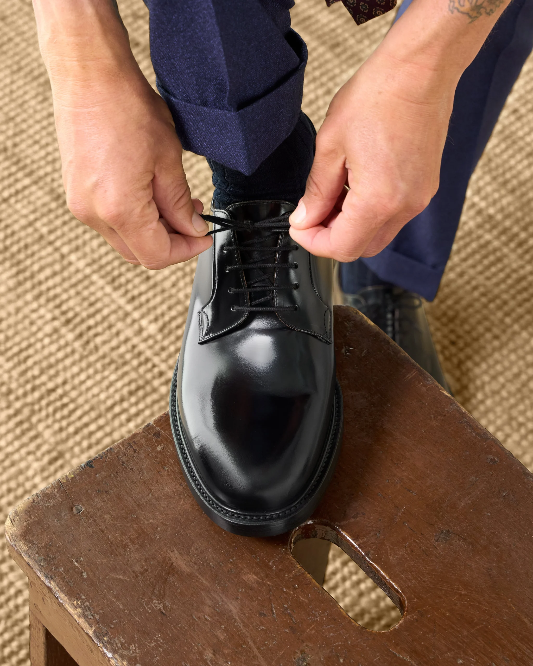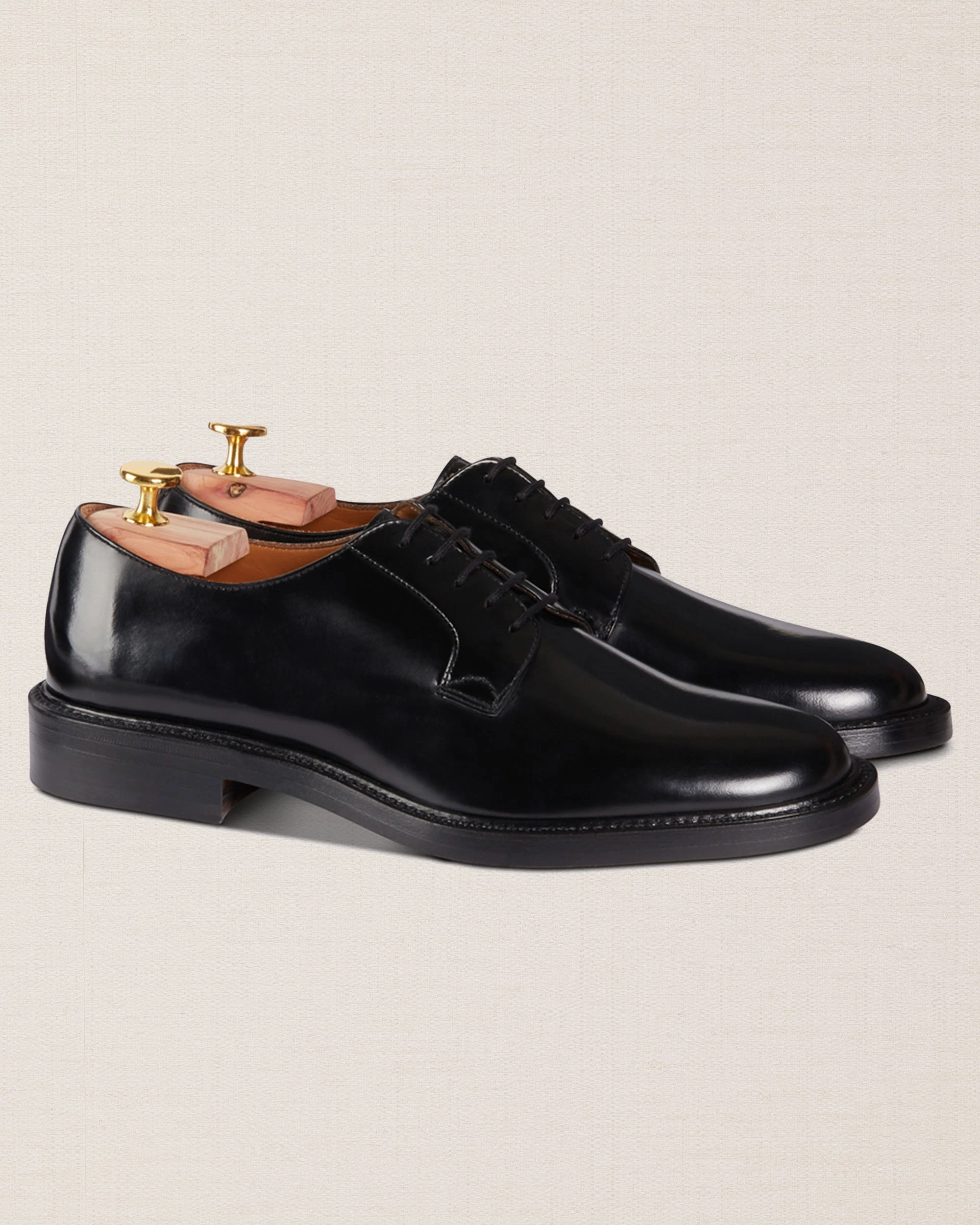 - Design: Classic Derby with a wide sole and rounded toe