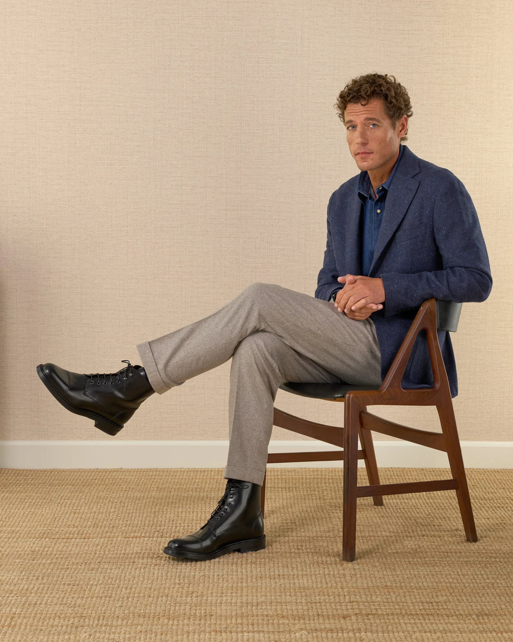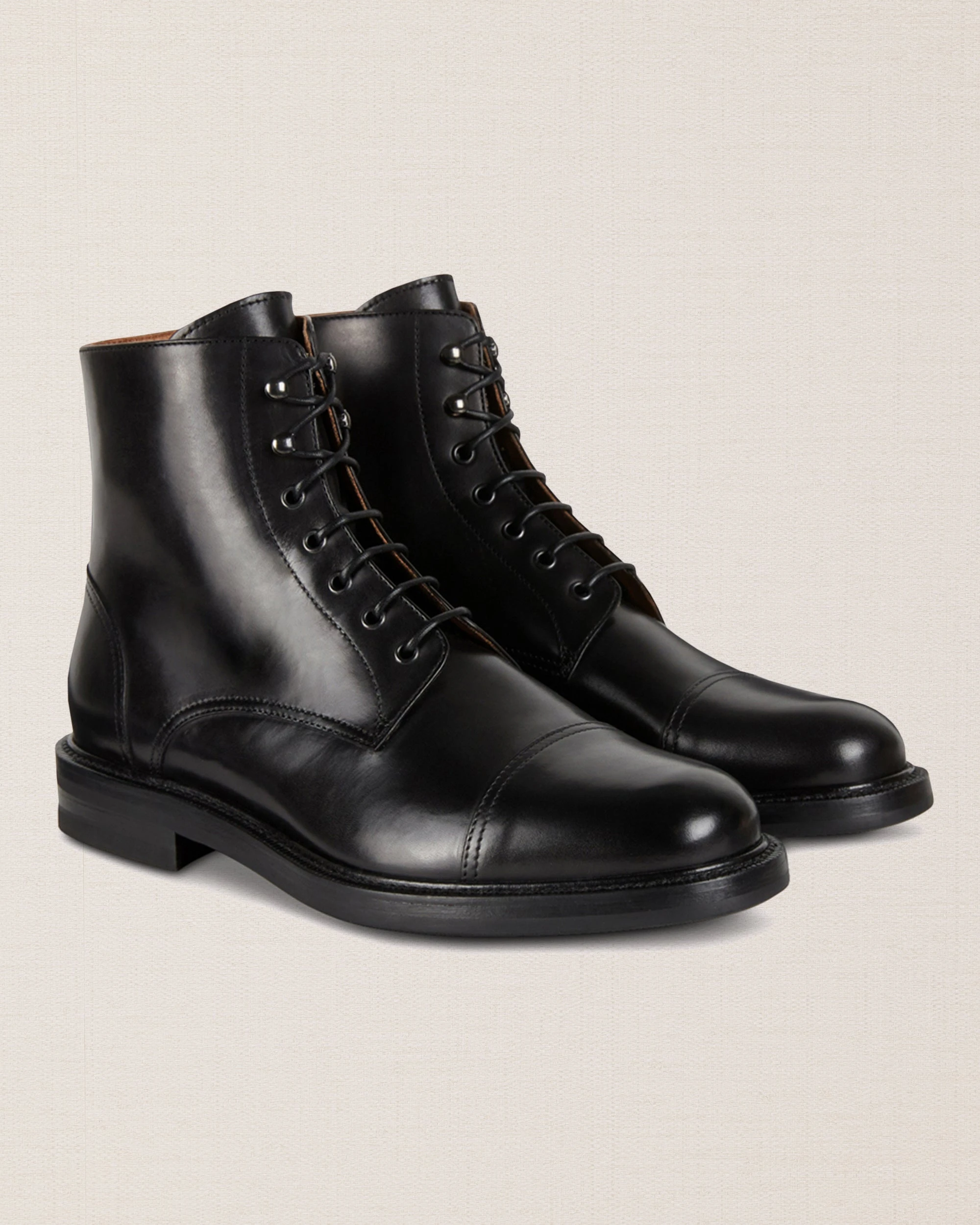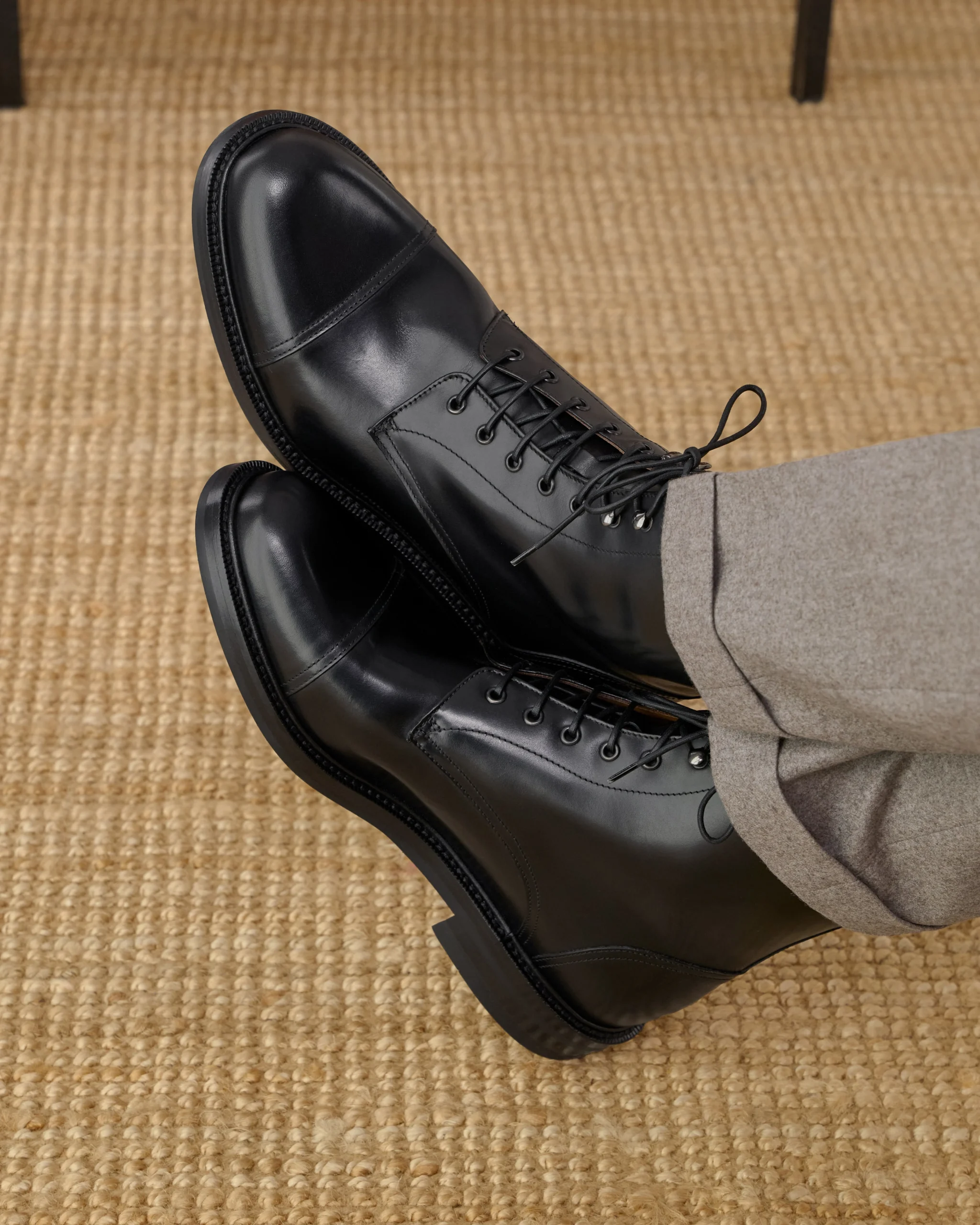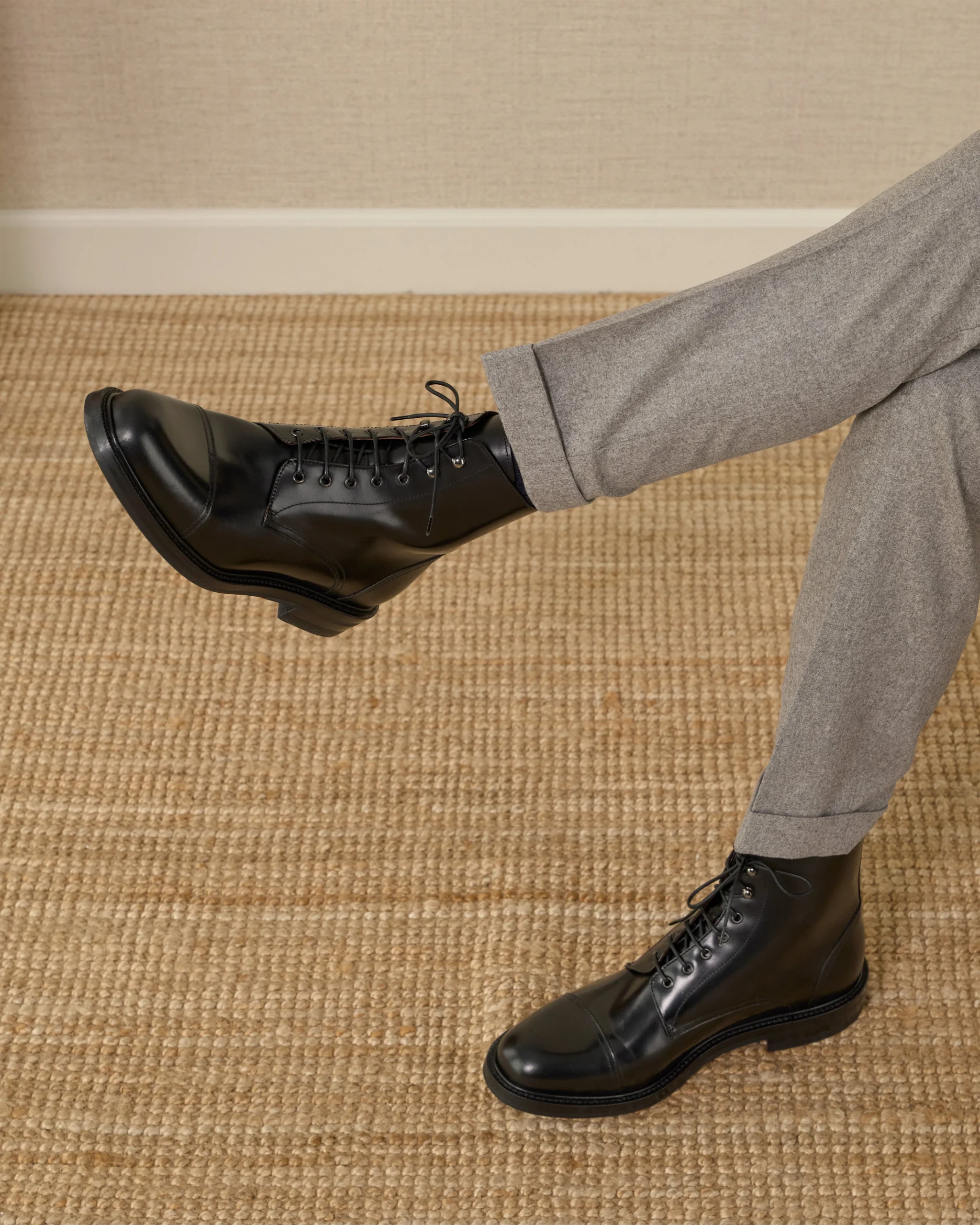 The [sbrand] Black Biker Boots are designed for those who prefer a bold, sleek style. Perfect for the biker or the Brit rock ‘n’ roll enthusiast, these boots feature full-grain leather and a durable rubber sole, making them ideal for matching with any material while providing long-lasting wear and comfort.