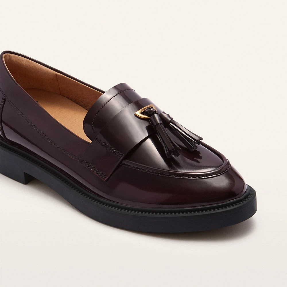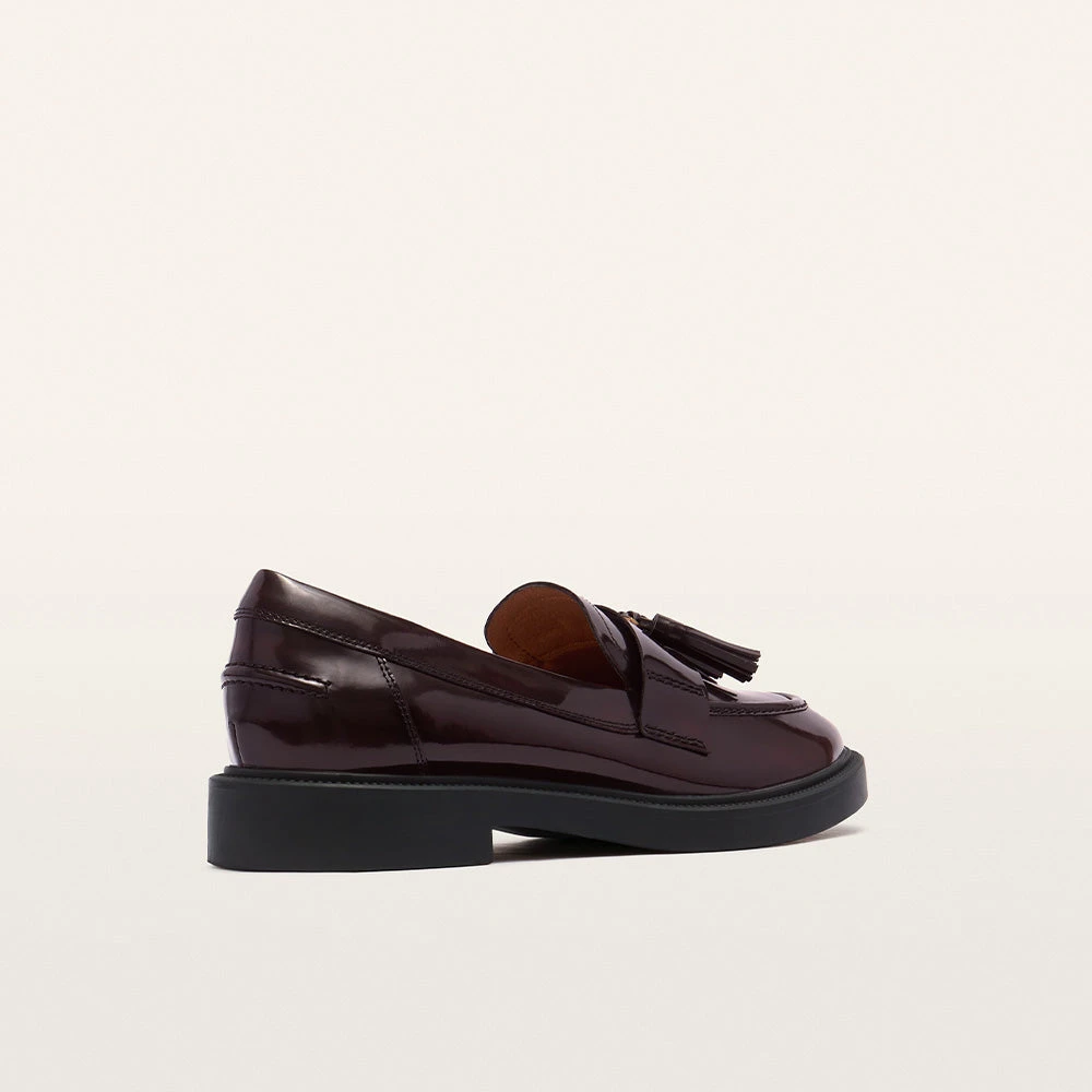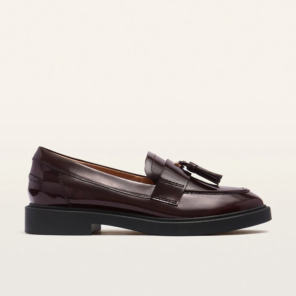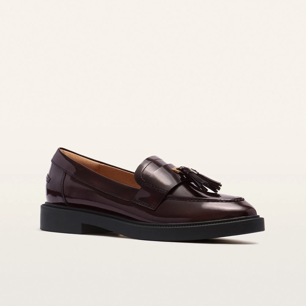 The [sbrand] Loafers are designed to bring timeless elegance with a modern polished finish. Crafted from glossy cherry‑tone leather, these loafers feature a refined silhouette with classic tassel detailing, creating a sophisticated look suitable for both work and everyday styling.